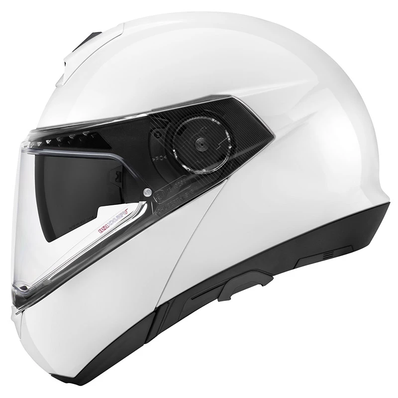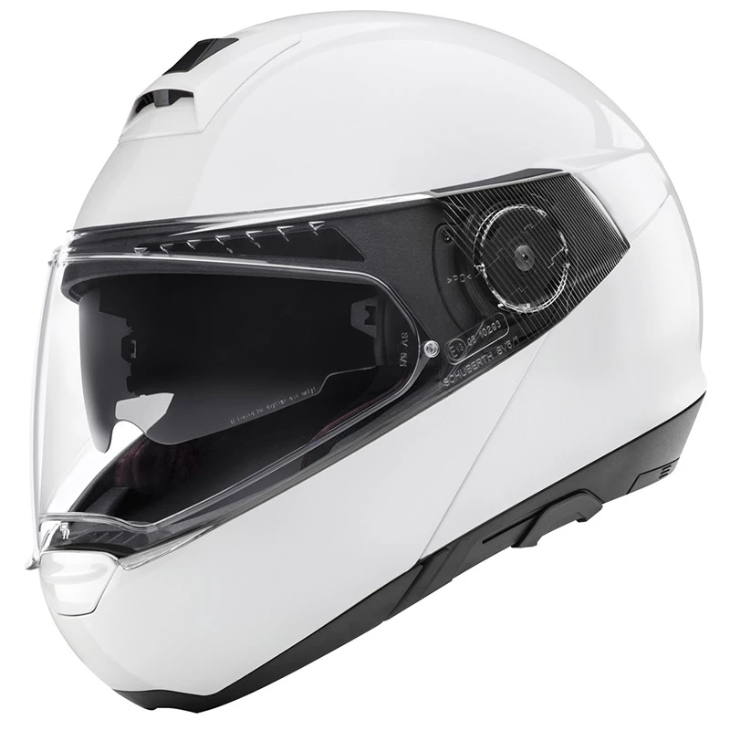C4 PRO WOMEN exclusively created for female motorcyclists with all the fittings and quality features of the C4 PRO, but optimally designed to fit the more slender shape of the female face. With additional cheek padding, the C4 PRO WOMEN offers a perfectly snug fit and provides optimum protection and comfort. Standards redefined: revamped acoustics and fit make C4 PRO CARBON, C4 PRO, C4 PRO WOMEN and C4 BASIC the quietest and most comfortable flip-up helmets that SCHUBERTH has ever built. Thanks to optimised neck padding and noise reduction around the mechanical attachments, the C4 PRO achieves approx. 85 dB(A) at 100 km/h on a naked motorcycle. Extremely comfortable to wear thanks to seamless head padding and integrated grooves for glasses. Helmet fits safely and comfortably: the Coolmax® interior is Öko-Tex 100-certified, removable and washable. Superior air circulation thanks to multi-channel ventilation. C4 PRO WOMEN exclusively created for female motorcyclists – with all the fittings and quality features of the C4 PRO, but optimally designed to fit the more slender shape of the female face. With additional cheek padding, the C4 PRO WOMEN offers a perfectly snug fit and provides optimum protection and comfort. The Jazzlight® lining is designed to ensure a secure and comfortable fit of the helmet. The fabrics are washable, anti-bacterial and quick-drying. The seamless head padding and integrated grooves for glasses make the helmet extremely comfortable to wear. Good air circulation thanks to multi-channel ventilation provides additional cooling for the helmet wearer. Of course the lining is certified in accordance with Öko-Tex 100, as well as removable and washable. A complex multi-channel ventilation system inside the helmet shell ensures a pleasant flow of air. Inlets in the forehead and lower visor areas ensure a high level of air circulation and help keep your head cool. Preventing fogging has never been so simple thanks to the Pinlock® anti-fog insert lens. For a wide field of vision even in a sporty riding position. Optical class 1: visor (no distortion) with quick-change function. Integrated sun visor, freely adjustable in seconds. PINLOCK120® anti-fog insert lens comes as standard: the ultimate PINLOCK® anti-fog insert lenses for optimum performance. Compatible with the SC1 STANDARD and ADVANCED communication systems as standard thanks to: integrated antenna, preinstalled loudspeaker, microphone for optimal Bluetooth® and radio reception. The unique manufacturing methods used for helmet shells at SCHUBERTH ensure low weight while retaining optimum stability. Direct Fibre Processing (DFP) is one of SCHUBERTH’s innovations. It involves an endless spool of glass fibre being cut into pieces by a robot and blown into a mould. A precisely defined quantity of resin is added to the preform and it is then compressed at high pressure in a heated mould to create an exceptionally high-strength helmet shell. The multi-part construction of the inner shell allows for outstanding force absorption, thereby enhancing safety.In order to guarantee our customers the best possible riding and wearing experience, we have included a PINLOCK anti-fog insert lens as standard with our C4 PRO WOMEN. Only by continually testing our products can we meet our own quality requirements and guarantee the satisfaction of our customers. SCHUBERTH hopes you have a pleasant journey! The motorcycle helmet complies with test standard ECE 22.05, which means it can be used throughout Europe. The helmet is available in sizes XS to L. This is suitable for head circumferences from 52 to 59 centimetres.