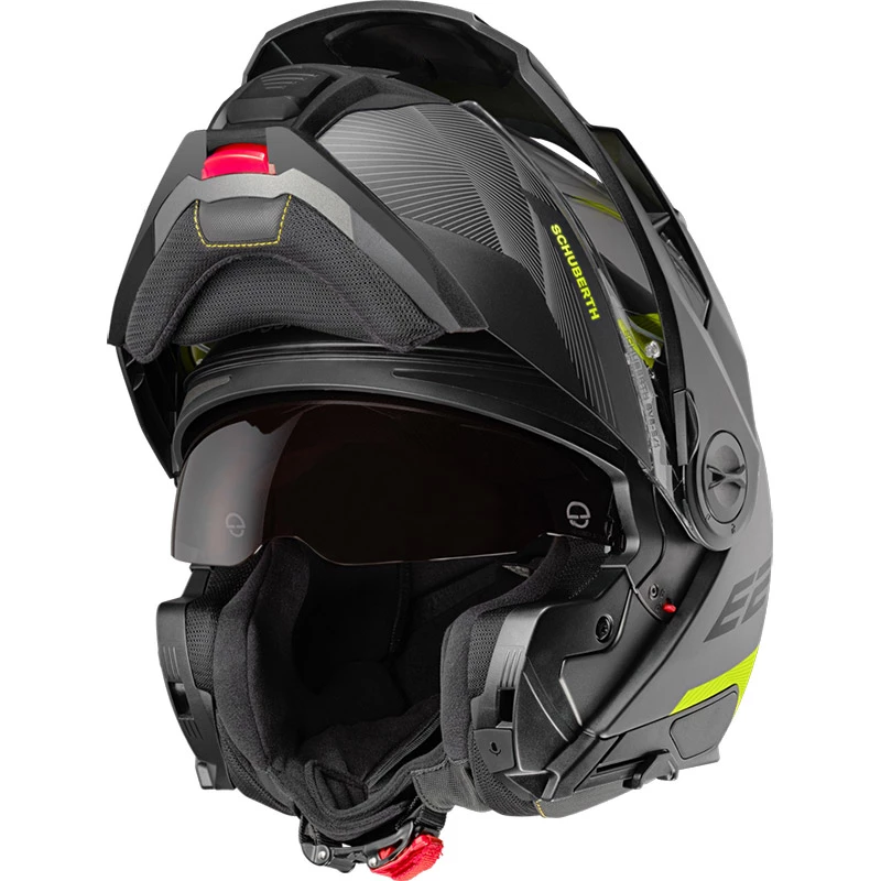 Just like the whole SCHUBERTH collection, the E2 benefits of the Anti-Roll-Off-System connected with a chin strap in a new advanced position for improved comfort on the throat area.