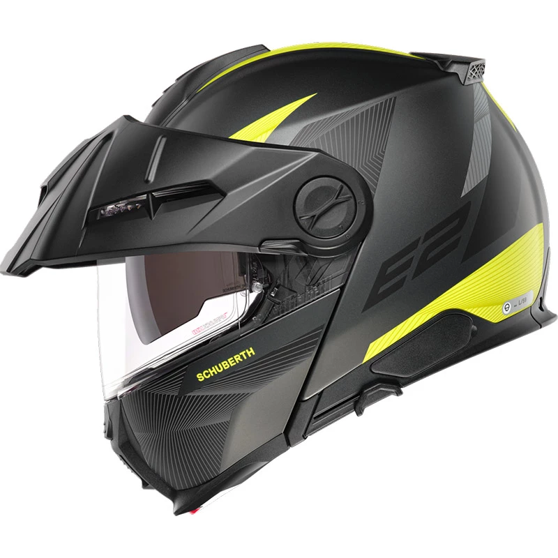 At SCHUBERTH safety is at the heart of every product. The E2 features the P/J double homologation and meets the ECE-R 22.06 standards. The shell of the SCHUBERTH E2 is made