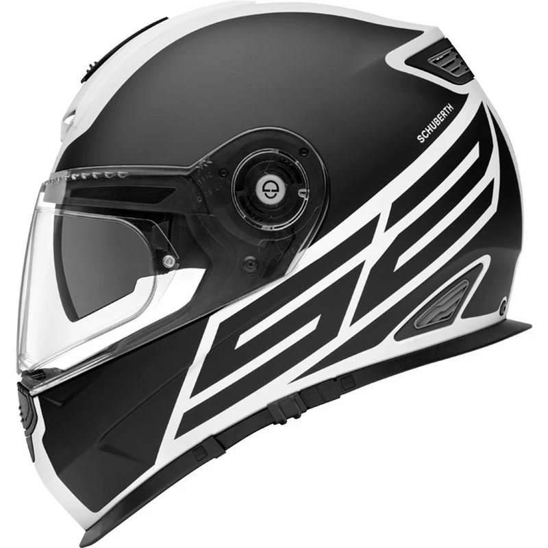 The special shaping of the helmet shell and of the leading edge of the helmet provide the necessary down force. Even higher speeds do not lead to lifting forces. Furthermore, the S2 Sport has a reduced aerodynamic drag and optimised directional stability. When riding naked bikes, buffeting is also clearly reduced. Many hours spent in the Schuberth acoustic wind tunnel have also turned the S2 Sport into one of the quietest full face helmets in existance.
