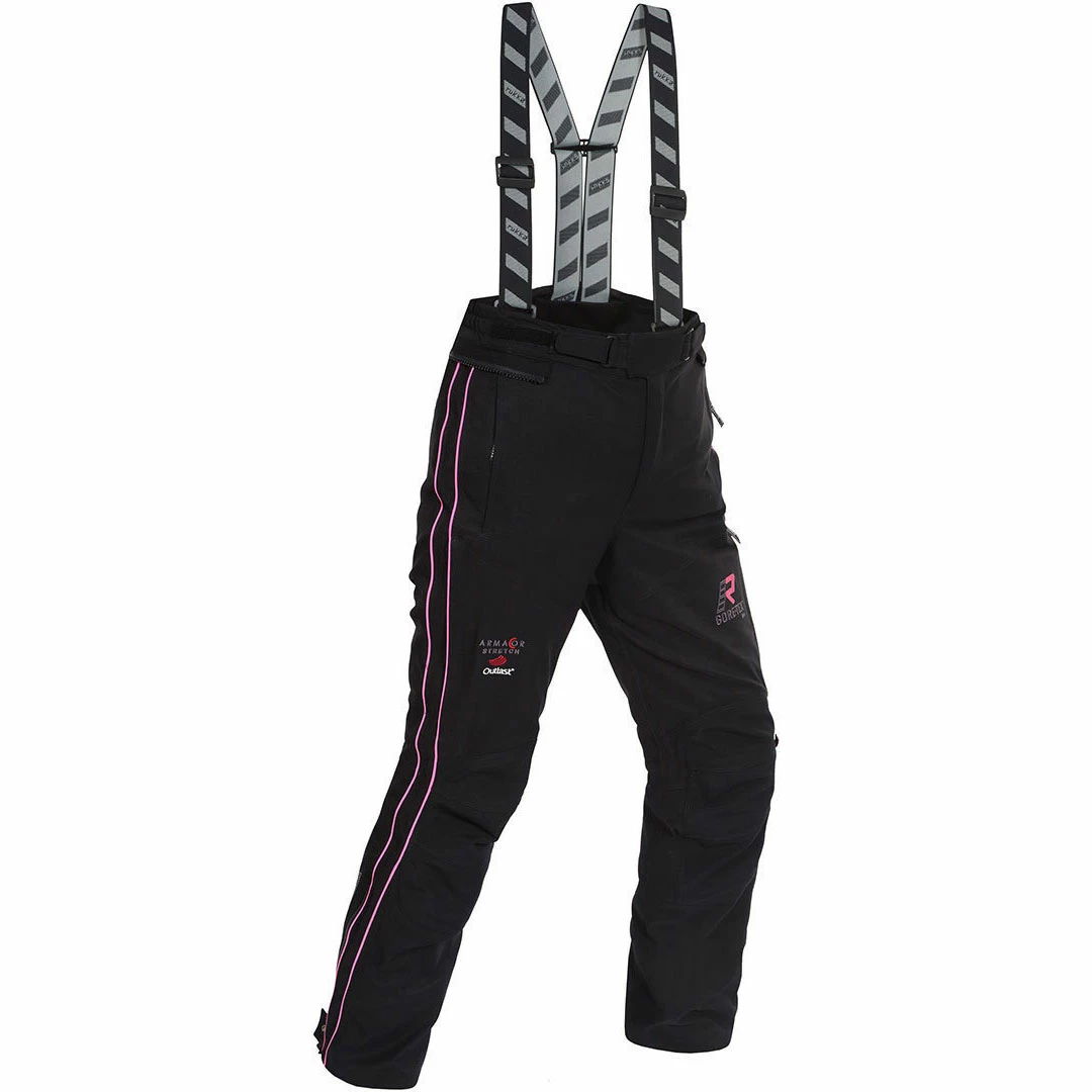A very pleasant pair of ladies trousers that will provide you with all the comforts you need whilst riding. The trousers are equipped with the infamous Gore-Tex membrane to ensure the trousers are wind and waterproof. Apart from this the trousers are equipped with a removable thermo-lining with 60g insulation, Outlast warmth regulation, an anti-glide system and AirCushion by Keprotec that will ensure more grip on the seat. For protection the trousers are equipped with D3O-protection designed especially for ladies. This protection is designed in such a way that it fits the female body perfectly and offers better protection. Next to this ‘female specific’ protection the trousers are also fitted with Armacor technology which consists of a dual layer material containing aramid fiber and Cordura.