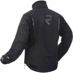 Rukka Adventure motorcycle jacket for men. Soft neoprene in collar. Integrated protective ATS (=attached storm collar) GORE-TEX Stretch collar, which can be hidden in its pocket. Stretch panels under the arms and on back. Sleeve ends with zippers and waterproof inner cuffs. Width adjustment on upper and lower arm with snap fasteners. Adjustable hem and sleeve ends with velcro tightening. A crotch strap and a long connecting zipper for trousers. Adjustable waist belt on sides. 100% breathable, wind